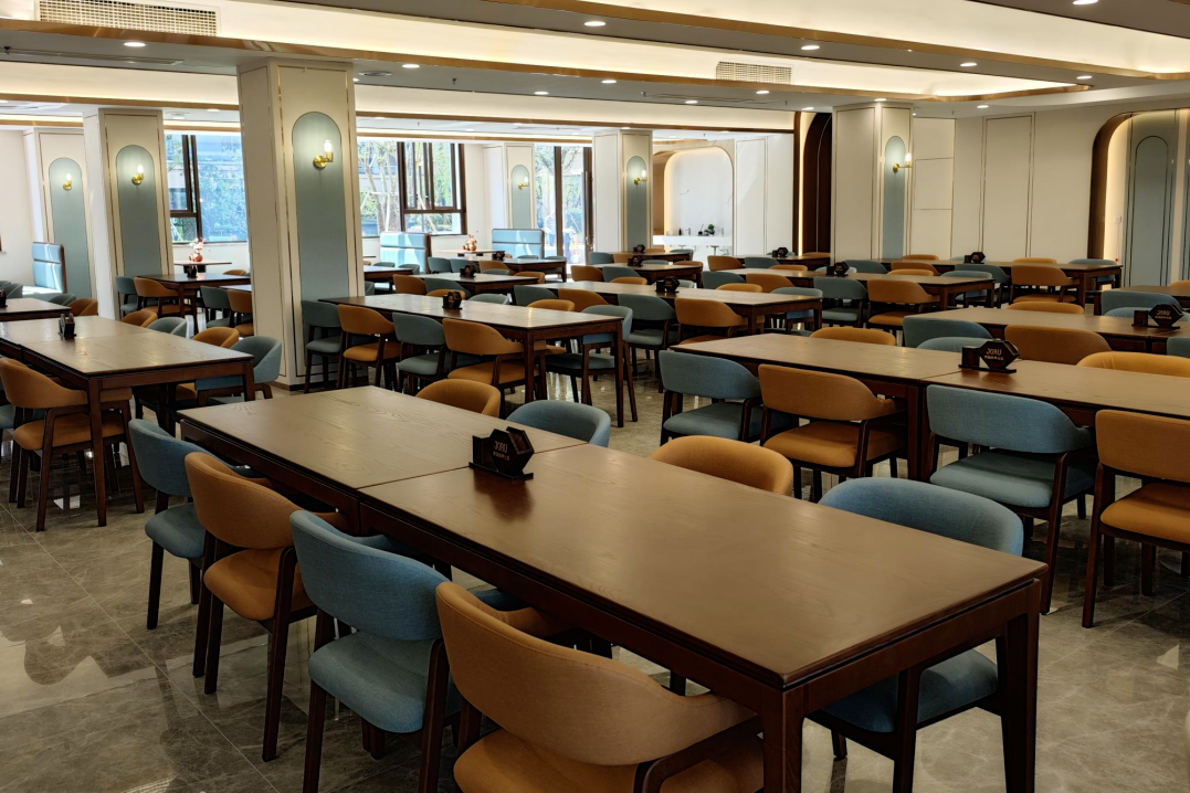 餐厅采用开放式设计,以增加空间的通透感和视觉效果,内设有多个区域,包括就餐区、休息区,圆桌套房,以满足不同长辈的就餐需要。